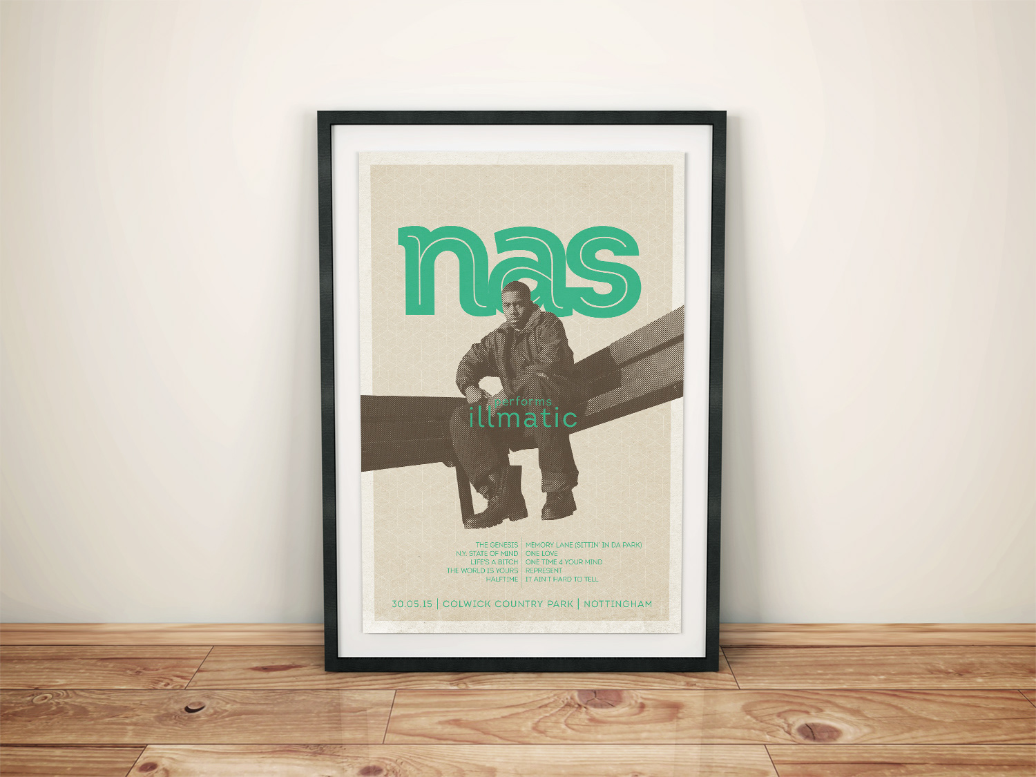 A poster to commemorate Nas' performance of his debut album 'Illmatic' at Detonate Festival 2015.